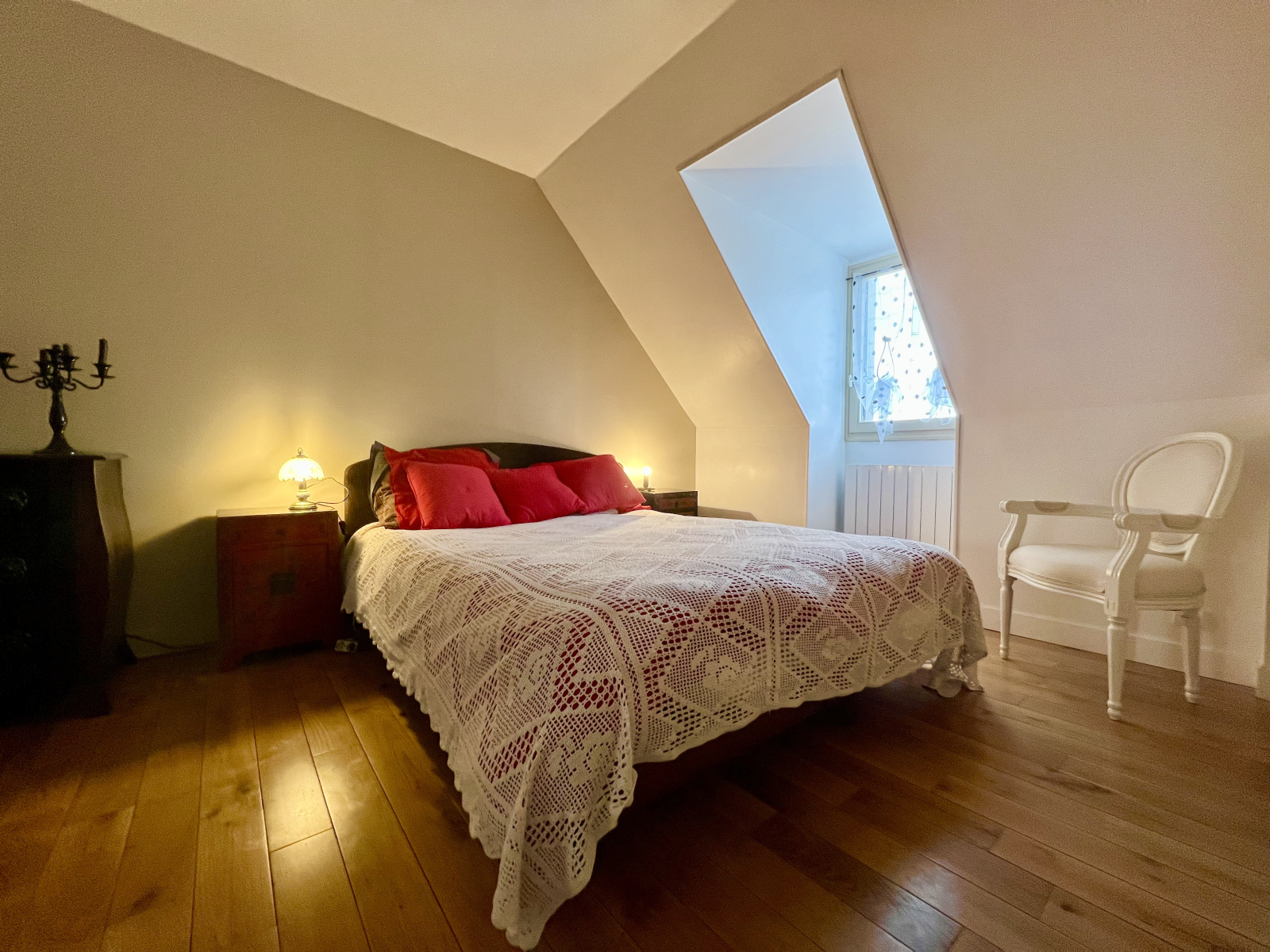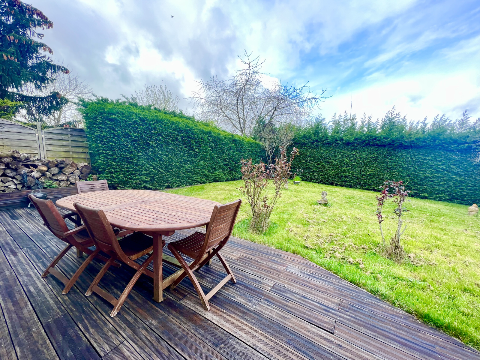 Maison traditionnelle et familiale à 2 pas des écoles et des commerces de 140m² utiles avec un jardin de 531m². Elle comprend au rez-de-chaussée : une entrée donnnat sur un double séjour avec cheminée et accès à la terrasse, une cuisine ouverte aménagée et équipée, une arrière-cuisine, une salle d'eau avec douche, un WC séparé, une chambre avec accès au jardin et un cellier/buanderie. A l'étage : un palier desservant 4 chambres avec rangements, une salle de bains et un WC séparé. Belle terrasse en bois exposé Ouest et un abri de jardin. Possibilité de garer 4 véhicules à l'extérieur.