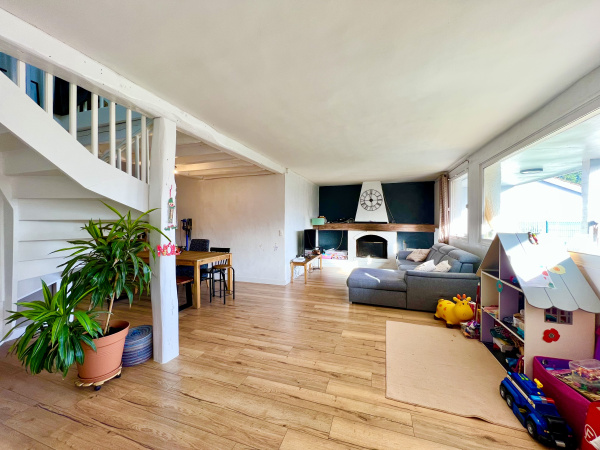 Dans le centre de Thoiry, au calme d'une impasse privée, maison familiale et fonctionnelle de 159 m² (144 m² loi carrez). Elle comprend : - au RDC : une grande pièce de vie lumineuse avec salon et salle à manger, une cuisine ouverte aménagée, une suite parentale avec salle d'eau et rangements, un bureau et un WC séparé. Un garage attenant avec espace buanderie. - à l'étage : une grande pièce palière pouvant être utilisée en espace jeux, musique, bureau... 3 chambres, dont une de 22m², une salle de bains, un WC séparé et un placard. Terrain de 549 m² comprenant un jardin clos (est-ouest), une terrasse (accès par le salon), un carport, 2 places de stationnement extérieures. Environnement de qualité, à pied des écoles et des commerces. Chauffage mixte électricité et poêle à pellets.