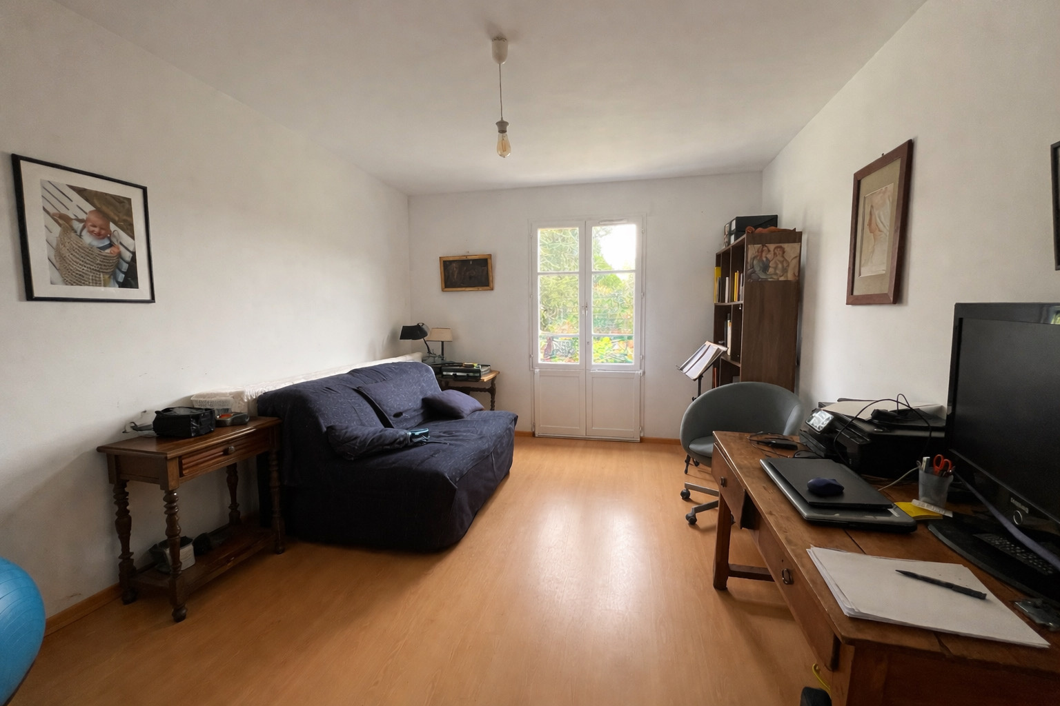 Le garage attenant permet de stationner un véhicule et comporte une buanderie avec adoucisseur d'eau et un local à vélos.