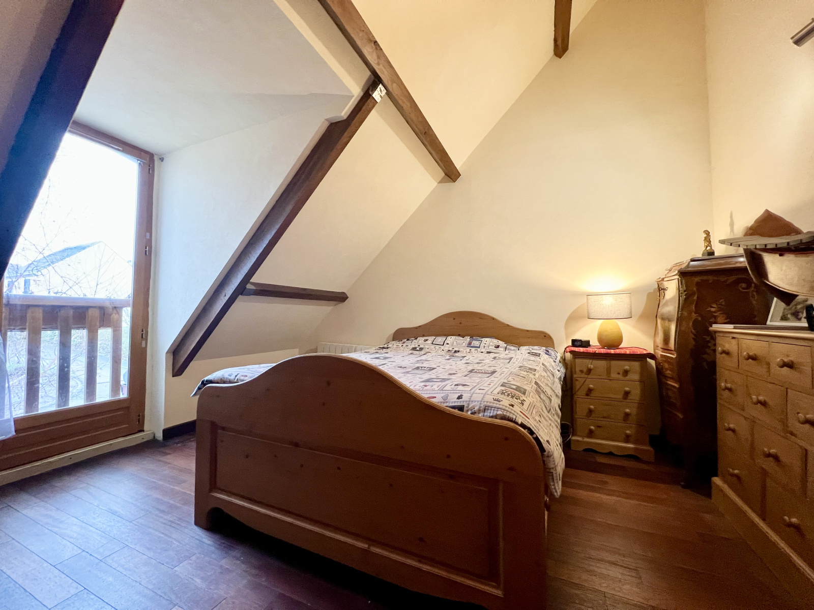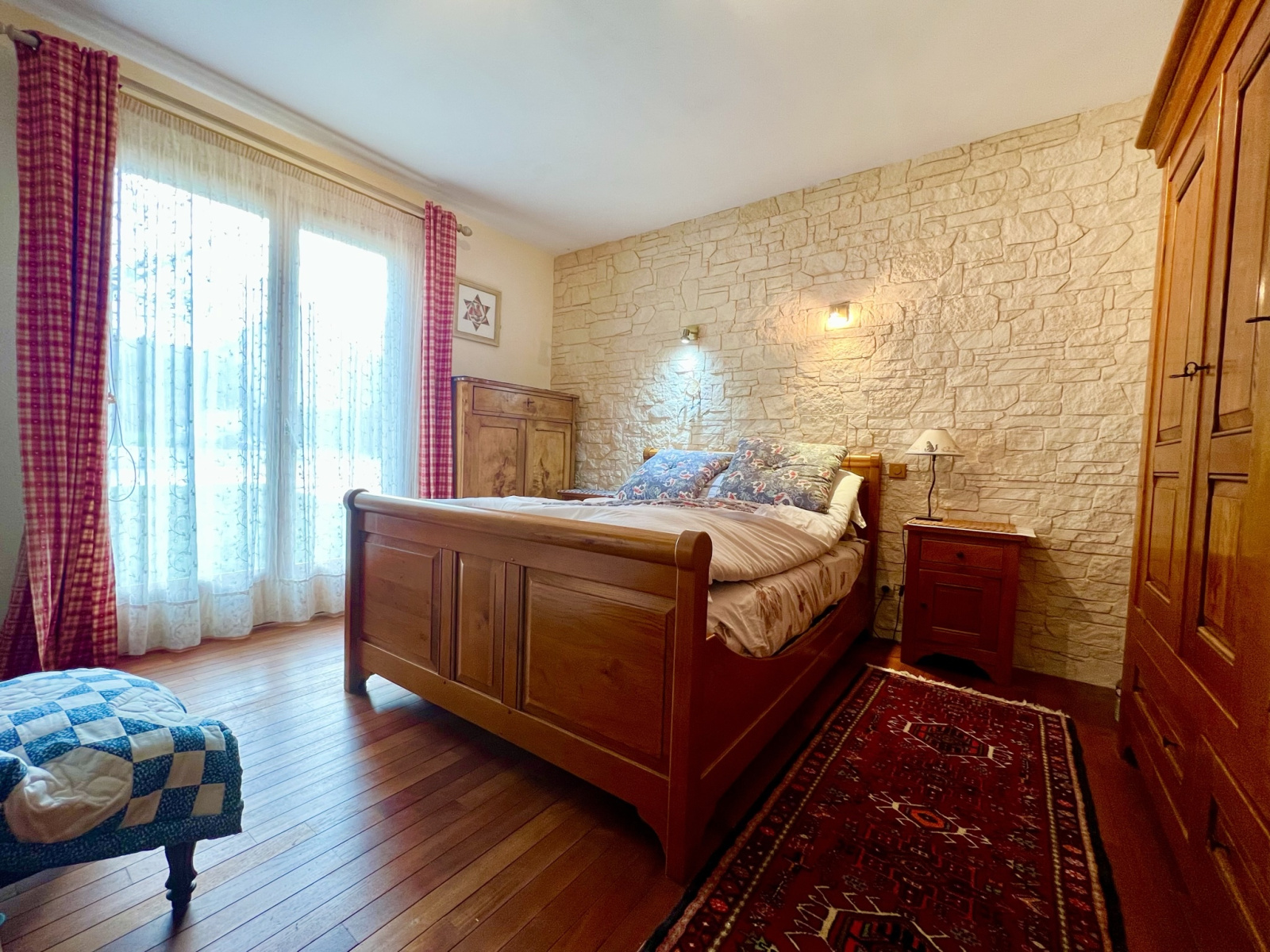 Elle comprend au RDC un double séjour cathédrale lumineux avec cheminée et un accès direct sur la terrasse et le jardin, une cuisine aménagée et équipée, deux chambres, une salle de douche et un WC séparé.