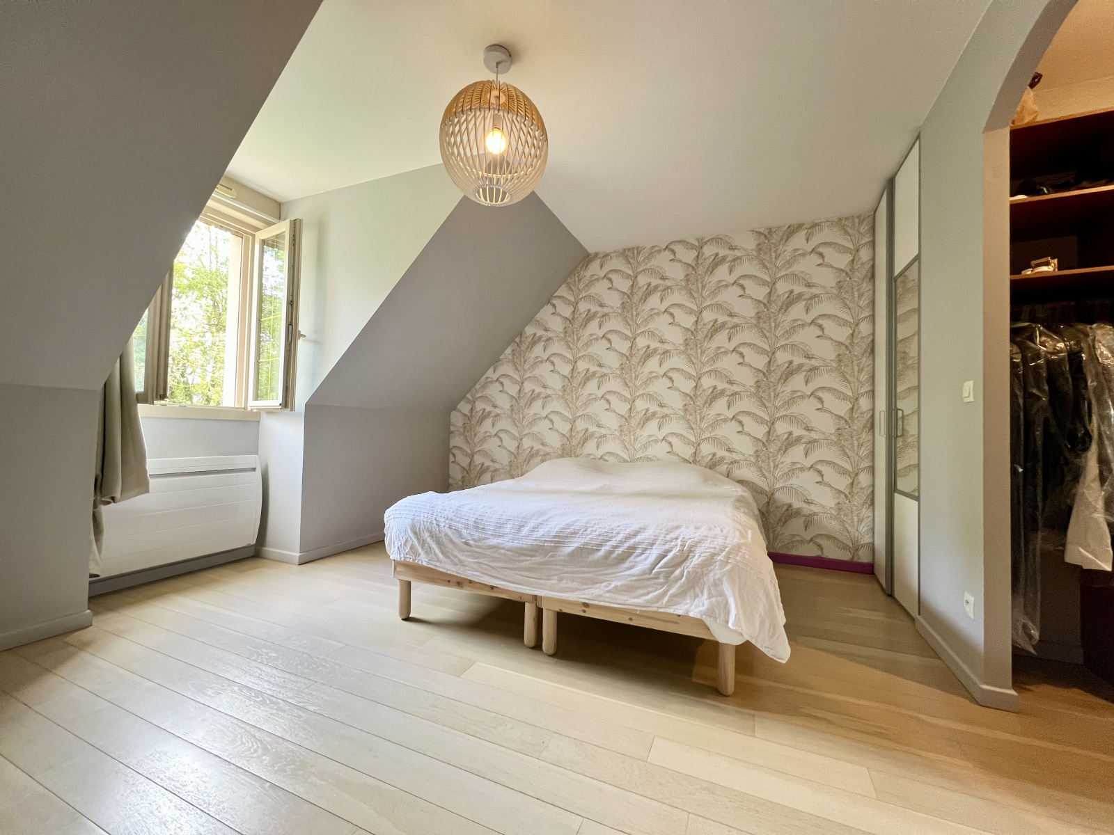 A l'étage : un palier dessert 3 grandes chambres avec rangements dont une avec salle d’eau privative, une suite parentale (28m²) avec dressing et salle de bains, une salle de bains et un WC indépendant.