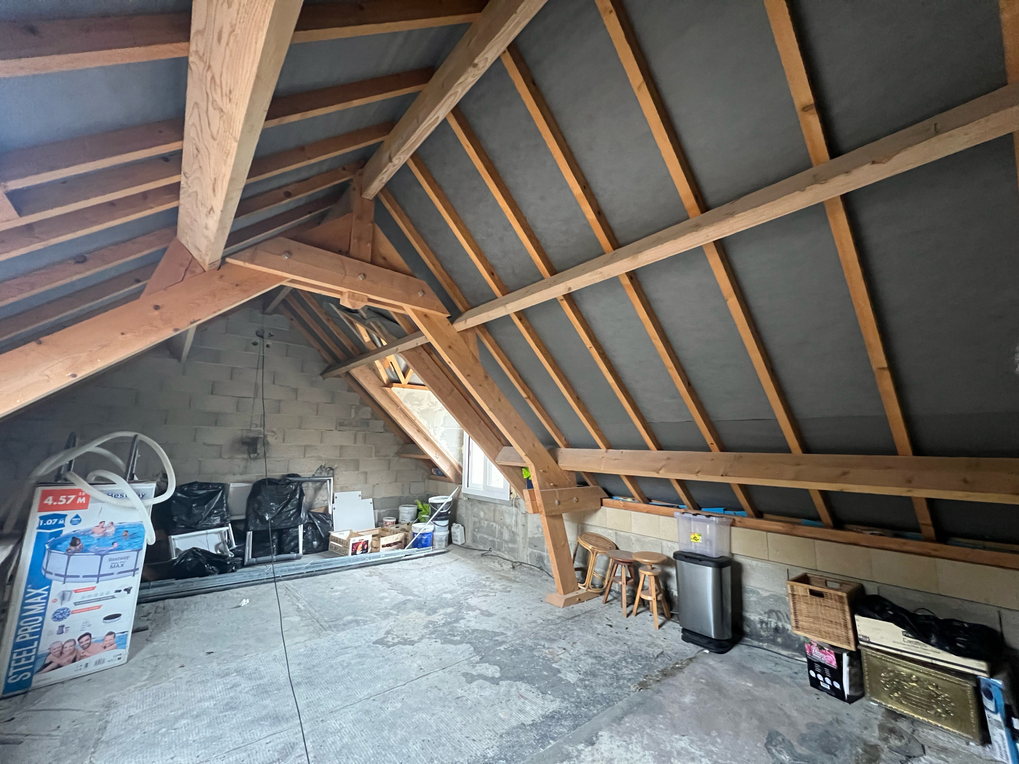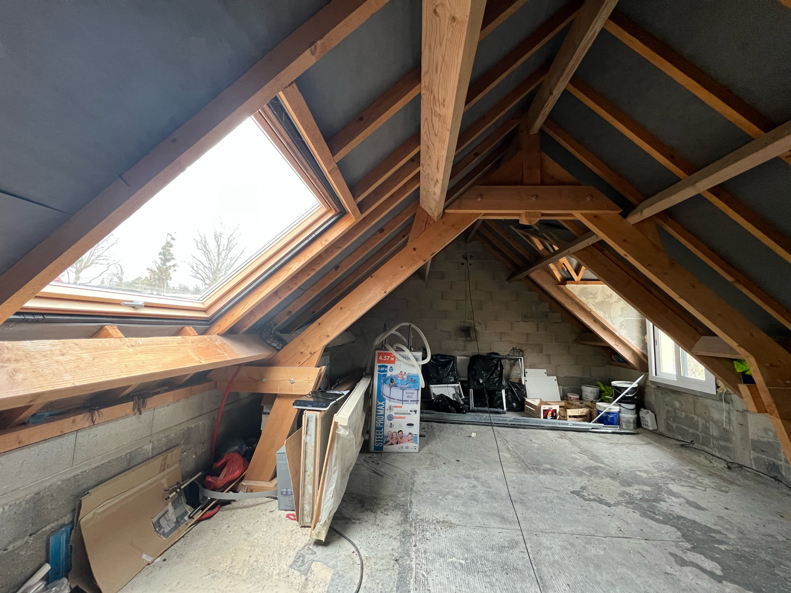 À l'étage, les combles d’environ 60m² ont été entièrement isolées permettant l’aménagement de plusieurs chambres et une salle de bain.