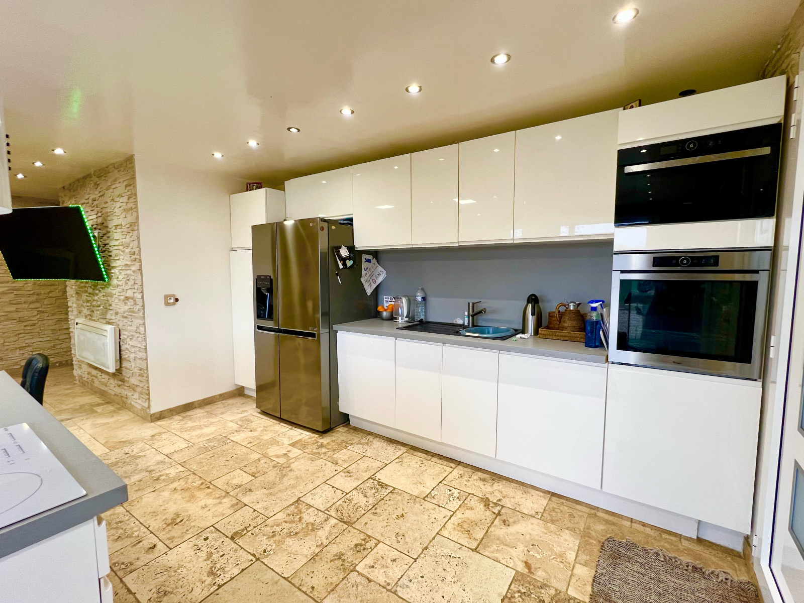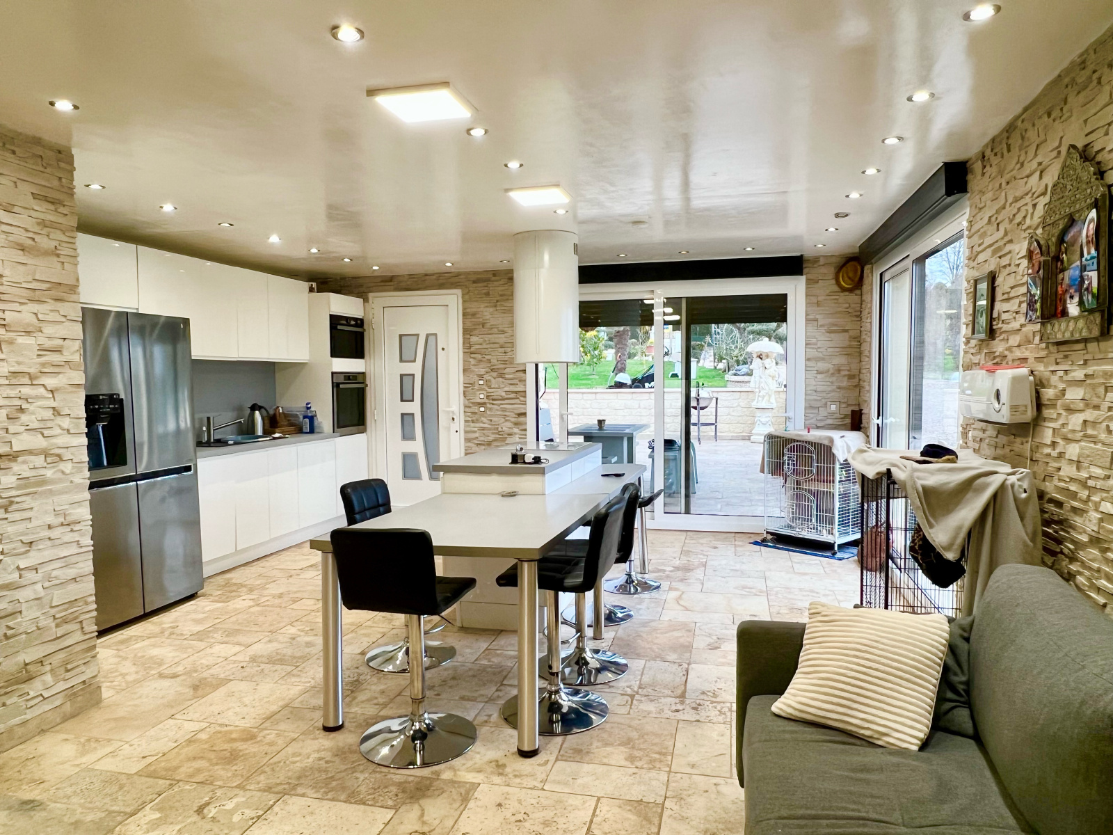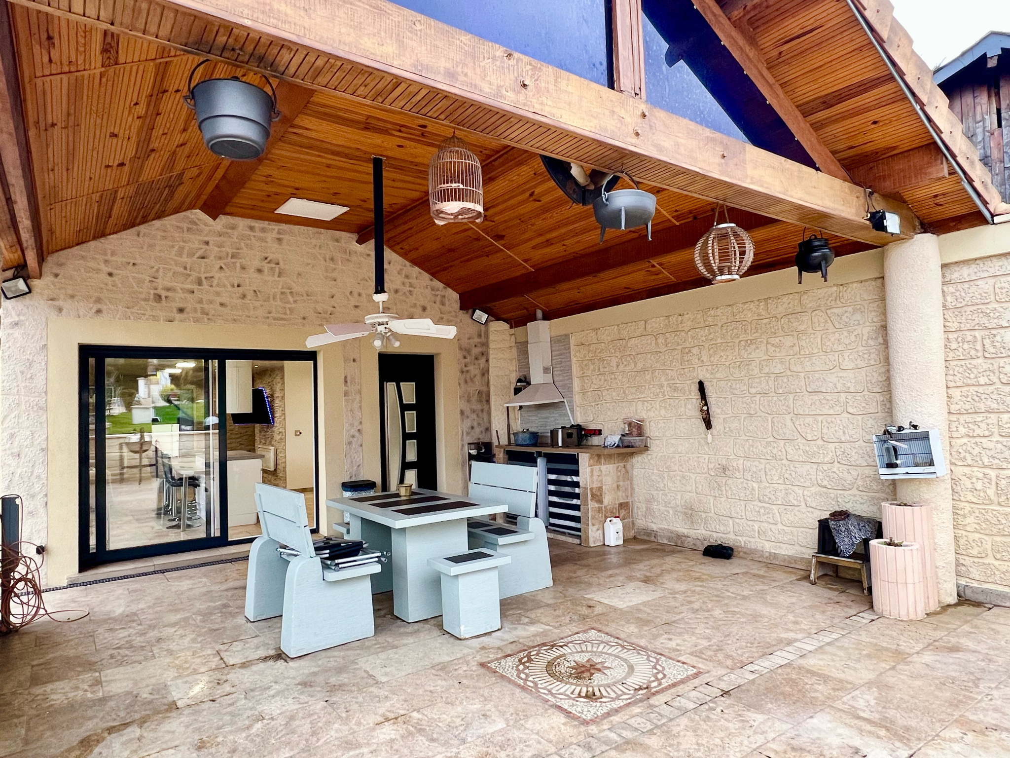 Elle comprend au rez-de-chaussée un séjour de plus de 30m² avec cuisine ouverte entièrement équipée, une grande terrasse partiellement couverte avec une cuisine d’été, une chambre lumineuse avec deux grandes baies vitrées, une salle d’eau avec WC et une buanderie.