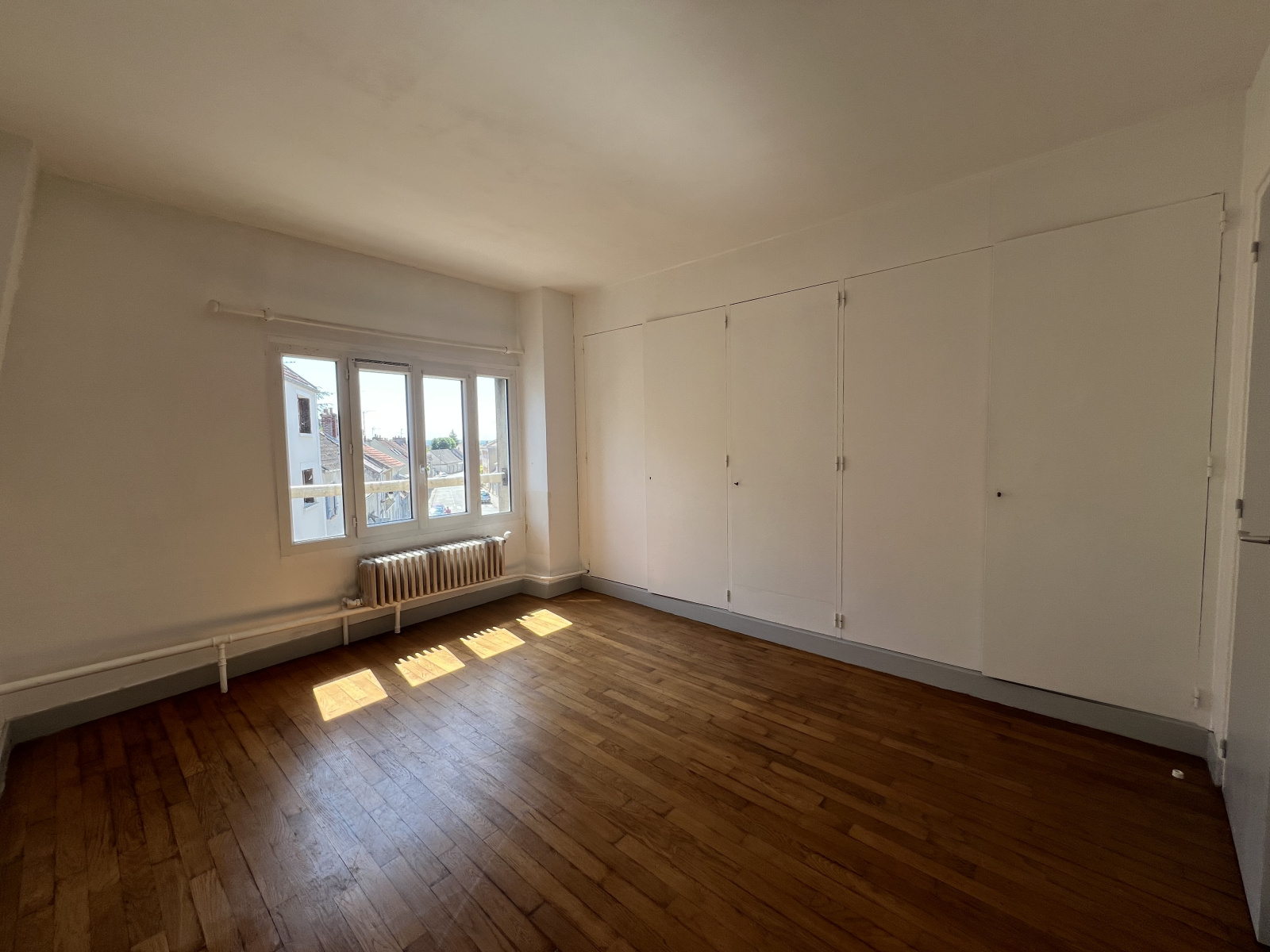A l'étage : un couloir dessert deux chambres avec placards, une salle d'eau et un grenier isolé.