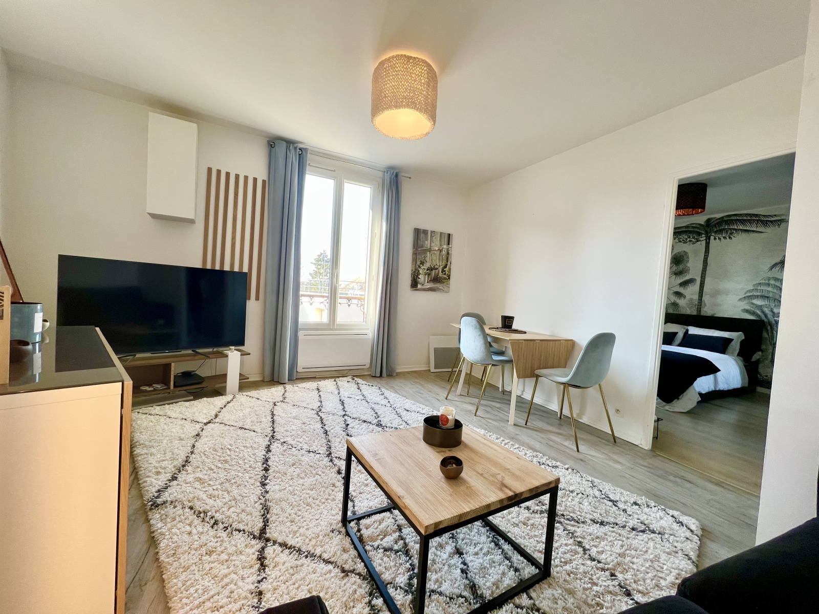 Il comprend un salon, une cuisine équipée, un dégagement, une belle chambre et une salle d'eau avec wc.
