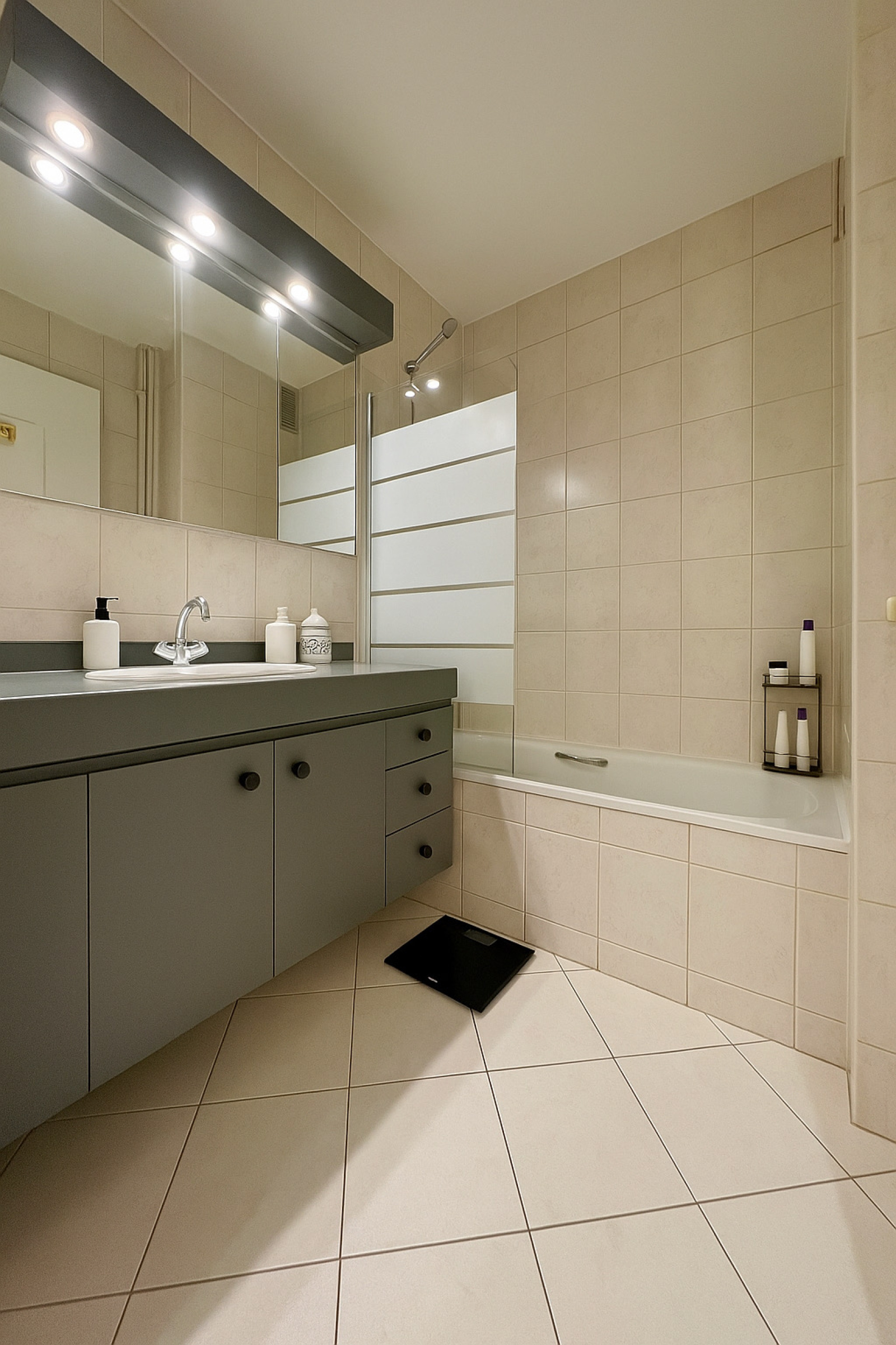 Il comprend une entrée avec placard donnant sur un séjour lumineux avec balcon, une cuisine aménagée et équipée, un dégagement, une salle de bains et un WC séparé, deux chambres et un dressing.