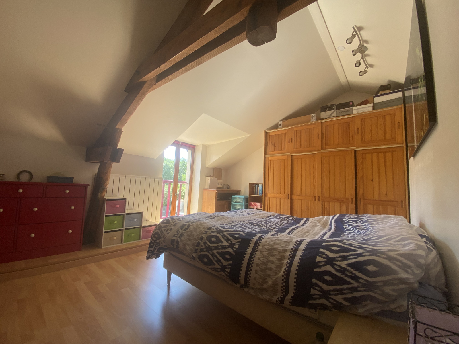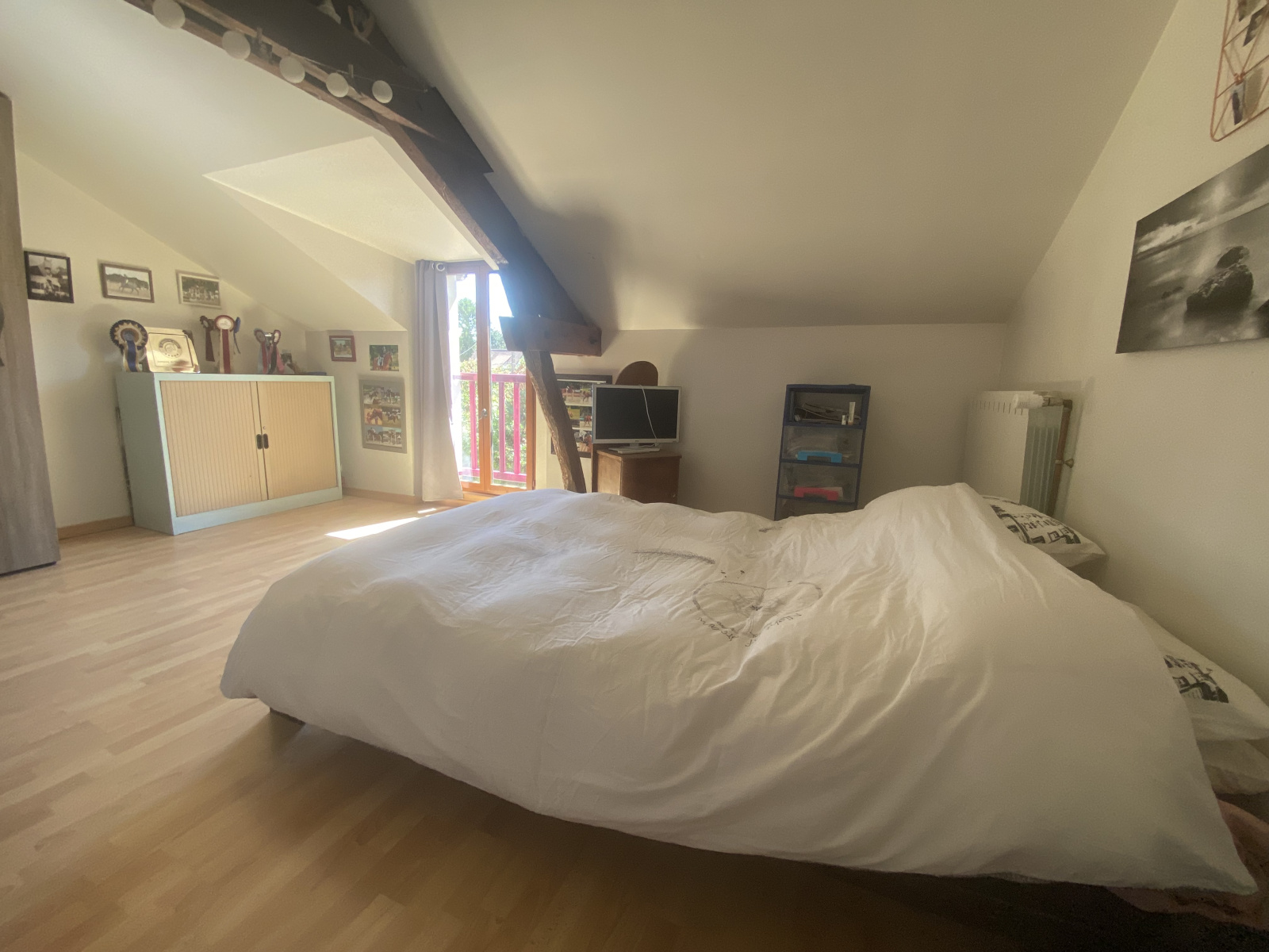 - A l'étage : 4 grandes chambres dont 2 desservies par un dégagement et 2 desservies par un couloir, une salle de bains avec baignoire et lavabo, un grenier et un WC.
