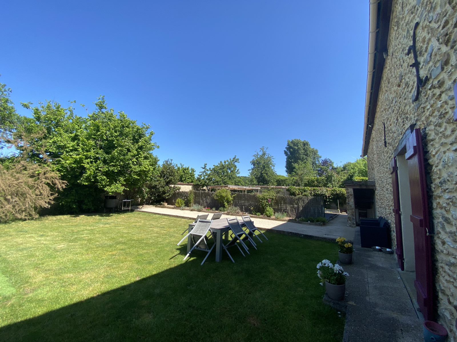 Au coeur du charmant village d'Hermeray, ancienne grange en pierres réaménagée en maison familiale d'environ 168m² (192m² au sol) comprenant :