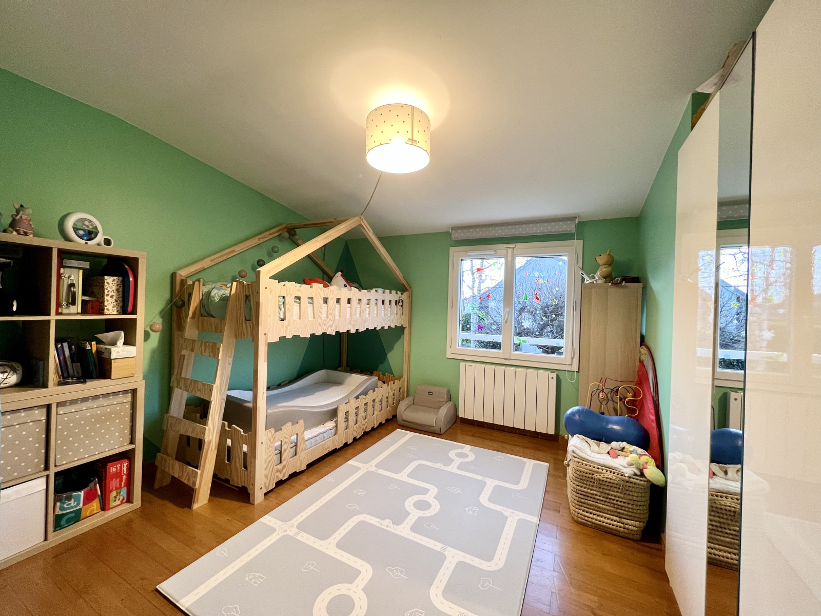 A l'étage 3 chambres parquetées dont une avec un dressing, une salle de bains et un WC séparé.