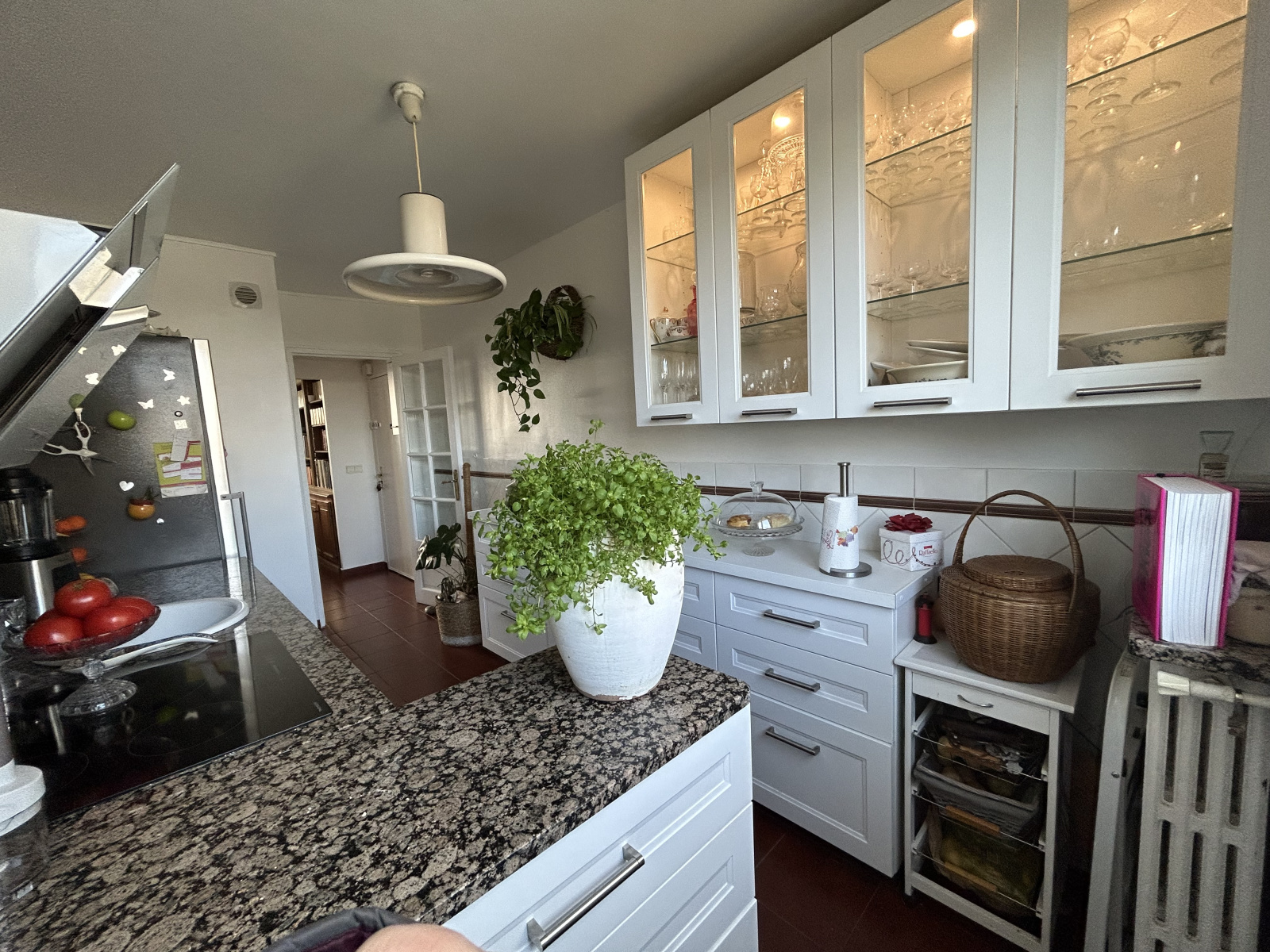 Cet appartement 5 pièces se compose ainsi : entrée, cuisine séparée refaite, cellier, séjour double donnant sur balcon, salle de bain, wc séparés, dégagement avec grands placards, 3 chambres et un dressing (possibilité d'en faire une seconde salle de douche)